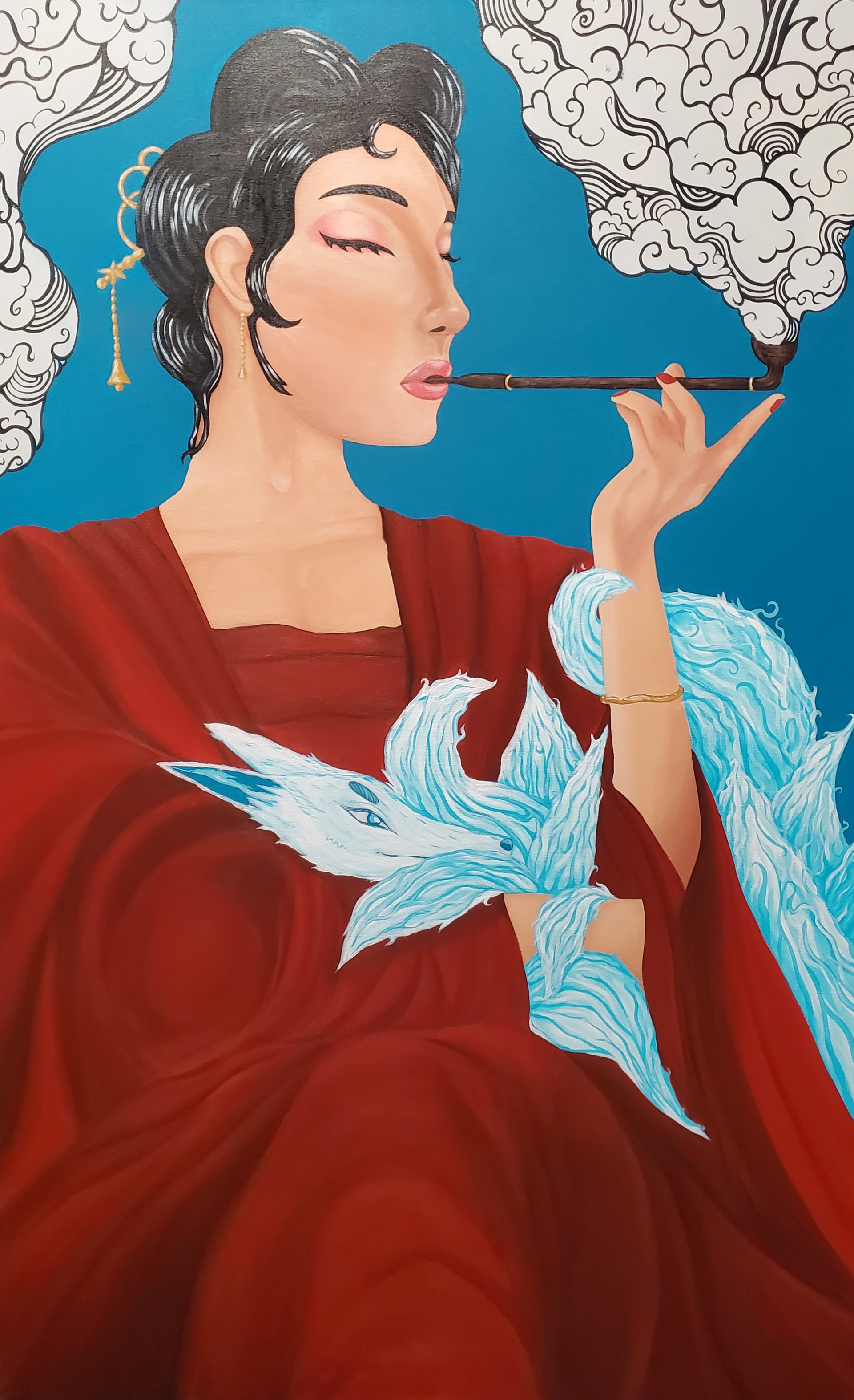 Acrylic paint on canvas, 36" x 48", Yokai of Japan Series 1