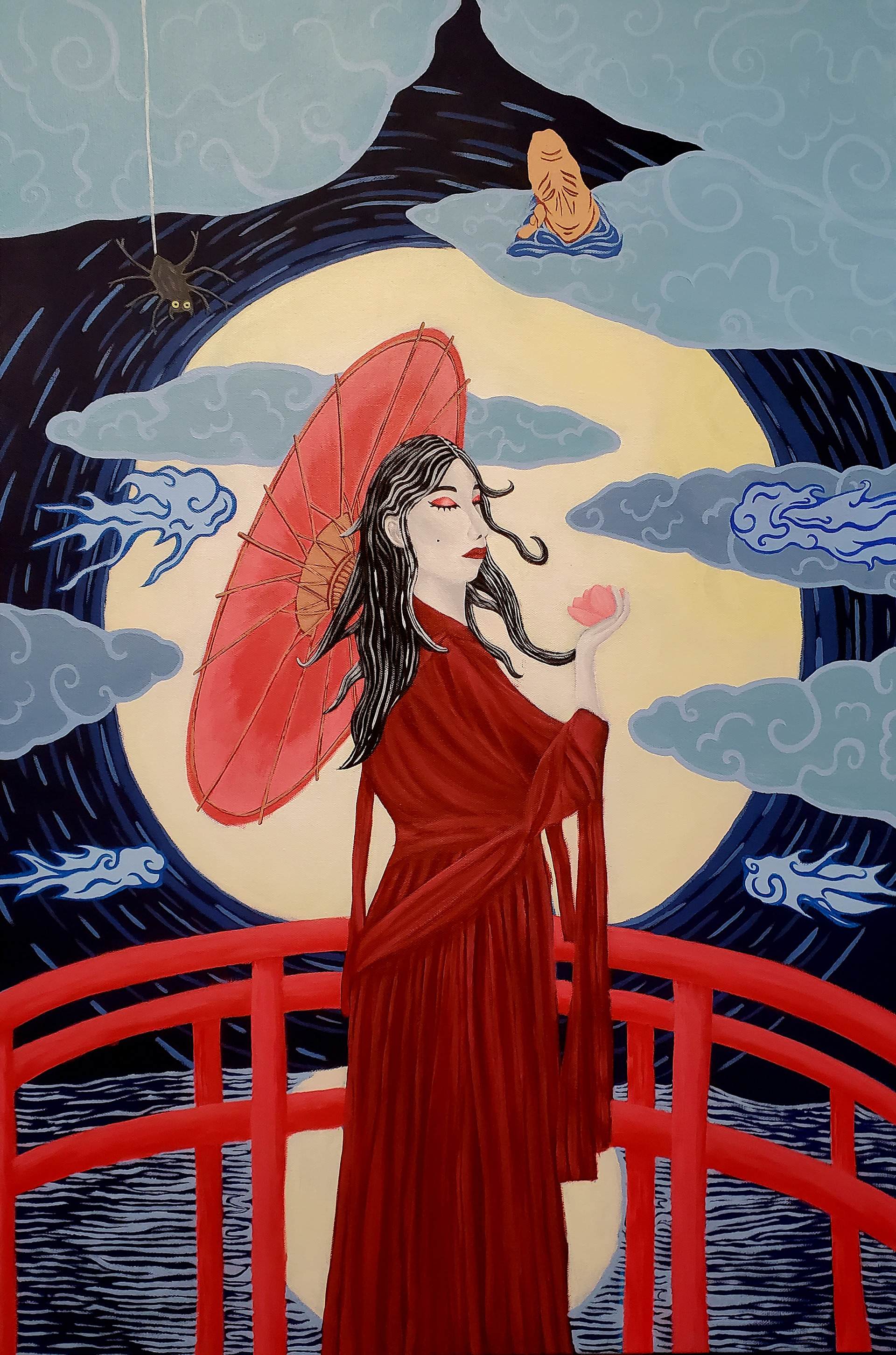 Acrylic paint on canvas, 24" x 36", Yokai of Japan Series 3